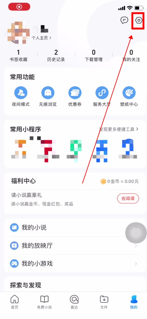 以QQ浏览器的移动端为例。打开浏览器,点击我的页面右上角的设置按钮。