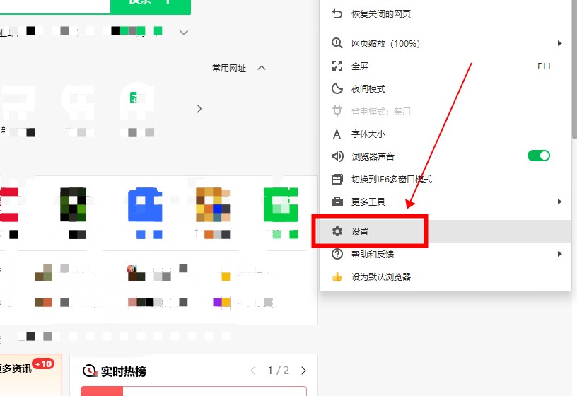 打开浏览器点击设置。