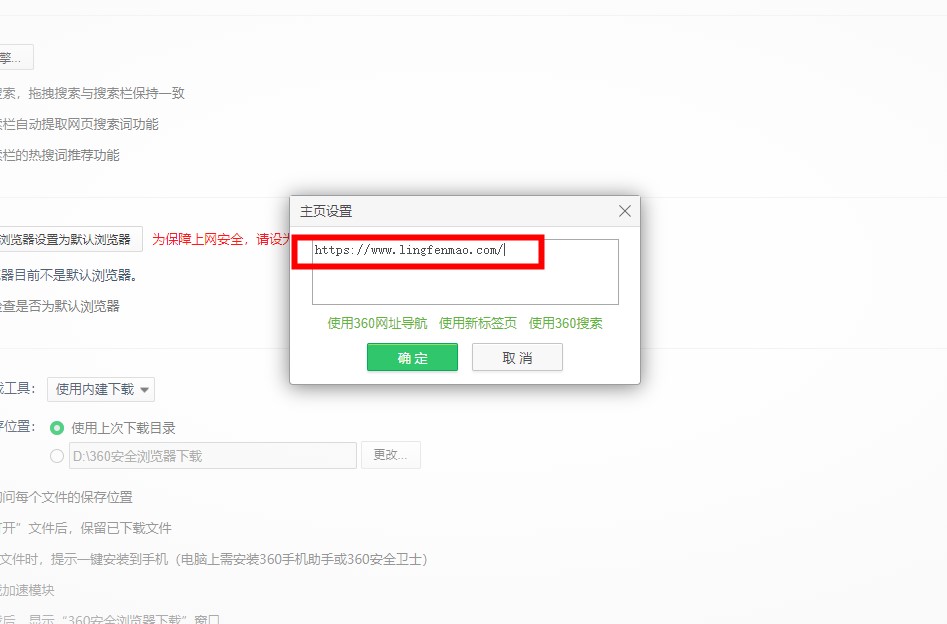 在弹出的主页设置中,输入要设置为主页的网址,点击确定。