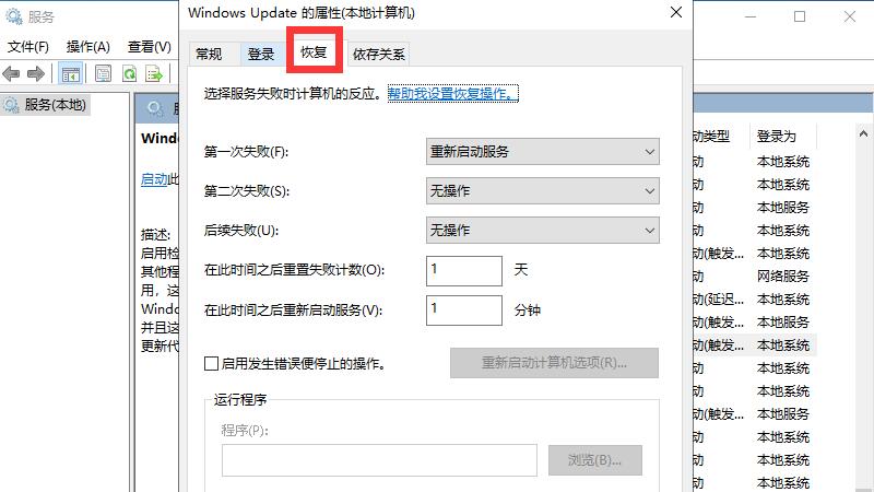 在“首次故障”中选择“无操作”选项并确认。
