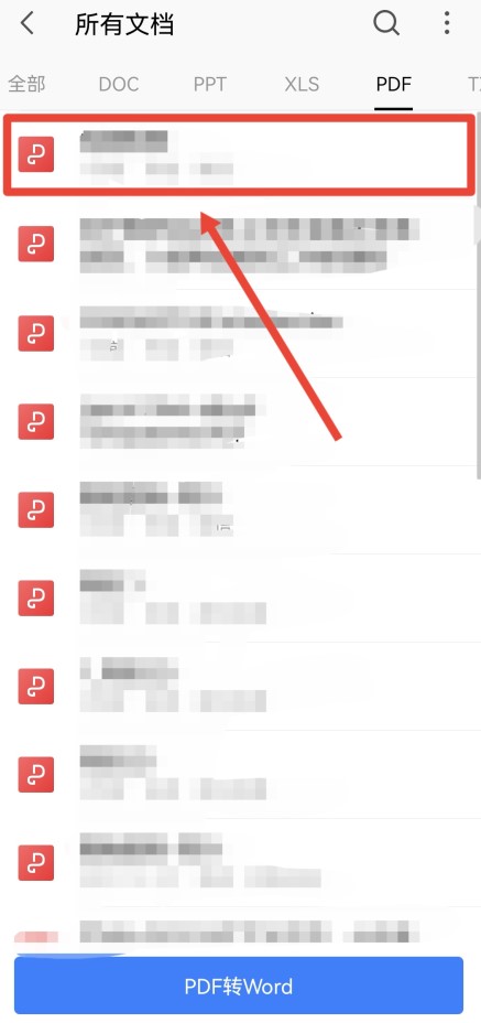 在“所有文档”页面中,选择您要输入的PDF文档。