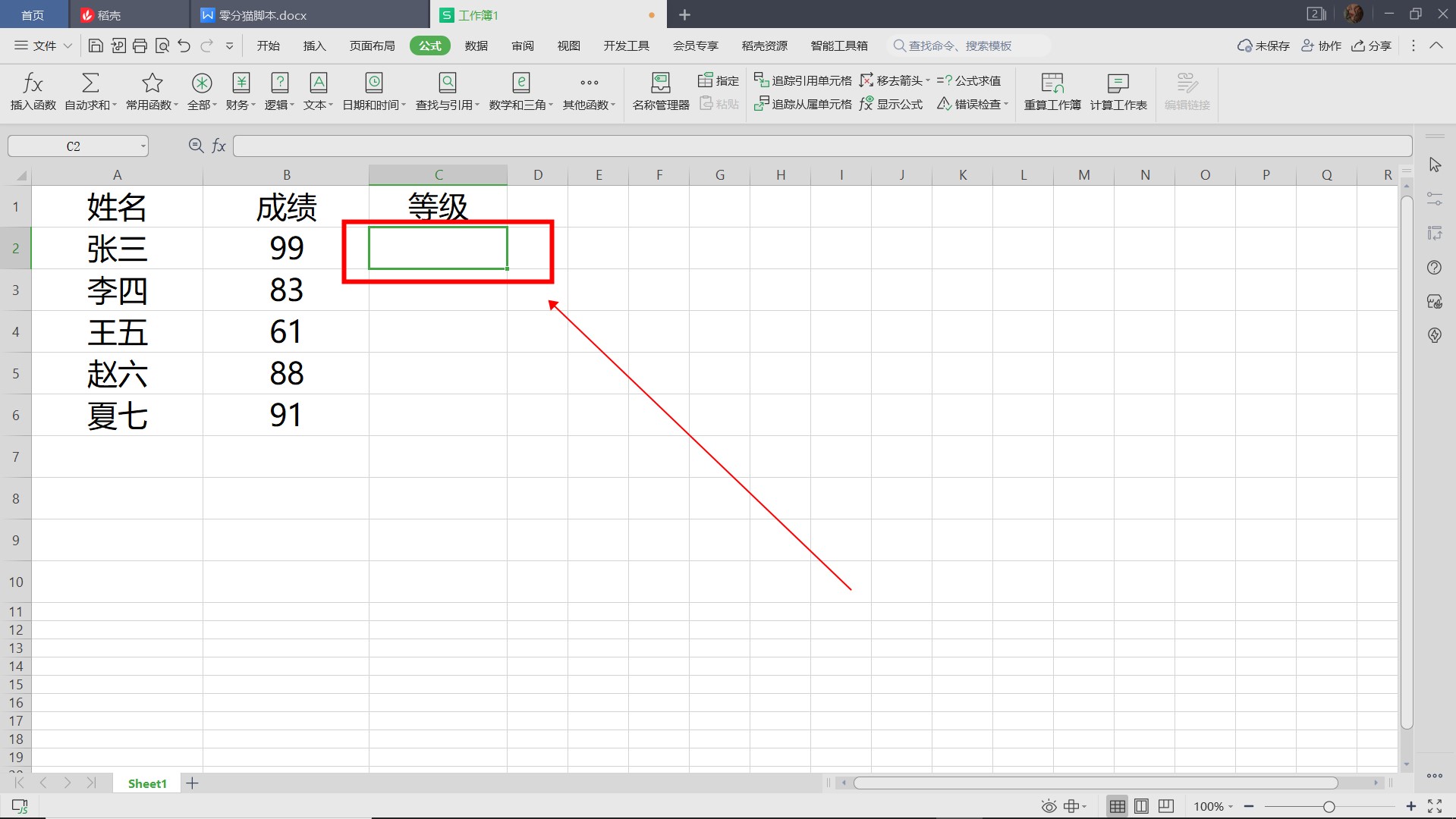 首先,打开Excel表格,选择C2单元格。