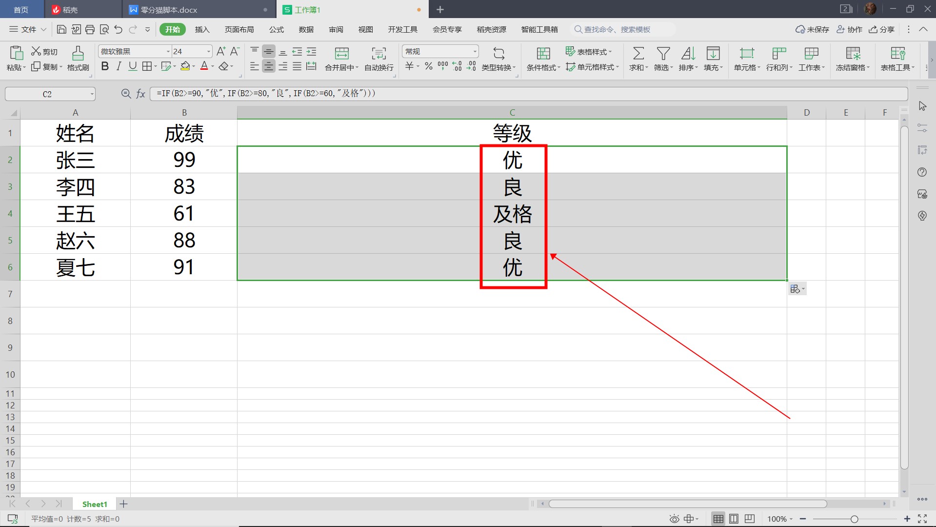 以一份成绩报告的计算为例,需要根据学生的成绩计算出相应的成绩。90分以上为优秀,80分至90分为良好,80分以下为及格。以下是在Excel中输入if的三个条件的步骤: