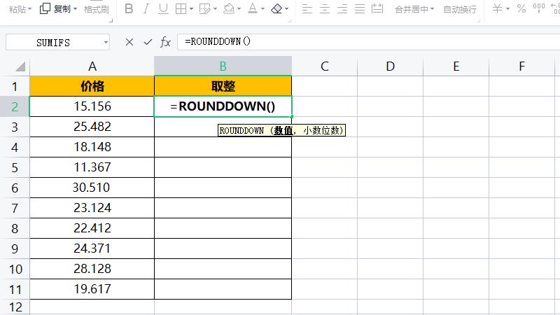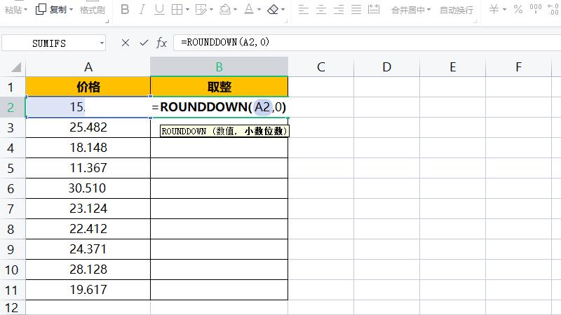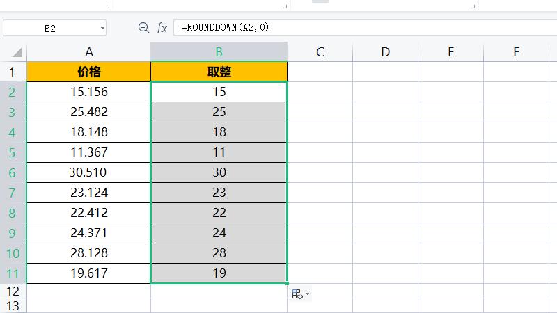 下拉单元格向下舍入。