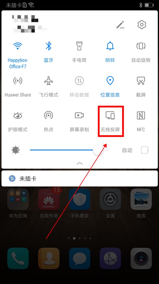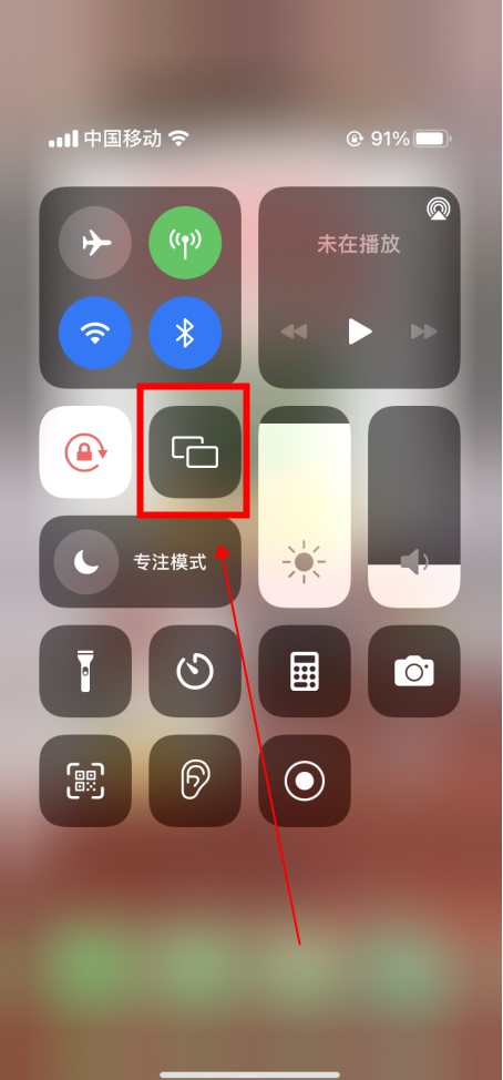 然后打开手机,下拉控制中心,点击“无线投屏”。