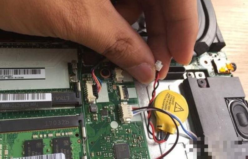 可以清除CMOS电池的放电,彻底拆开电脑底部的D面,从主板上取下纽扣电池连接器。