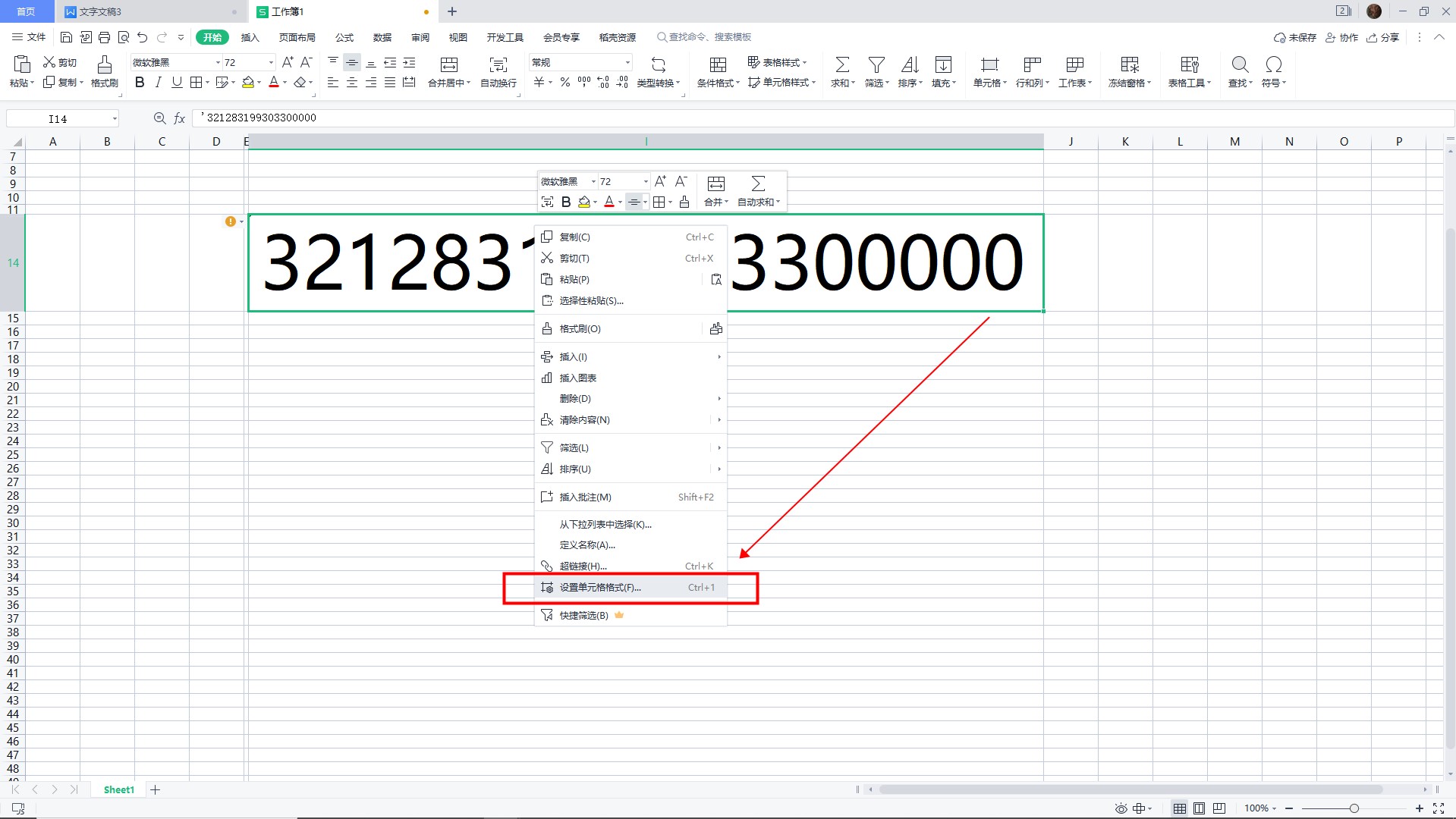 excel的输入ID号后面跟0000是因为文本格式设置不正确,可以在单元格格式中修改。以WPS 11.1.0.11365为例,分为以下三个步骤: