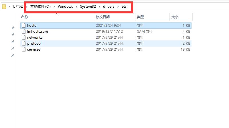 在路径c : \ windows \ system32 \ drivers \ etc中找到hosts文件。