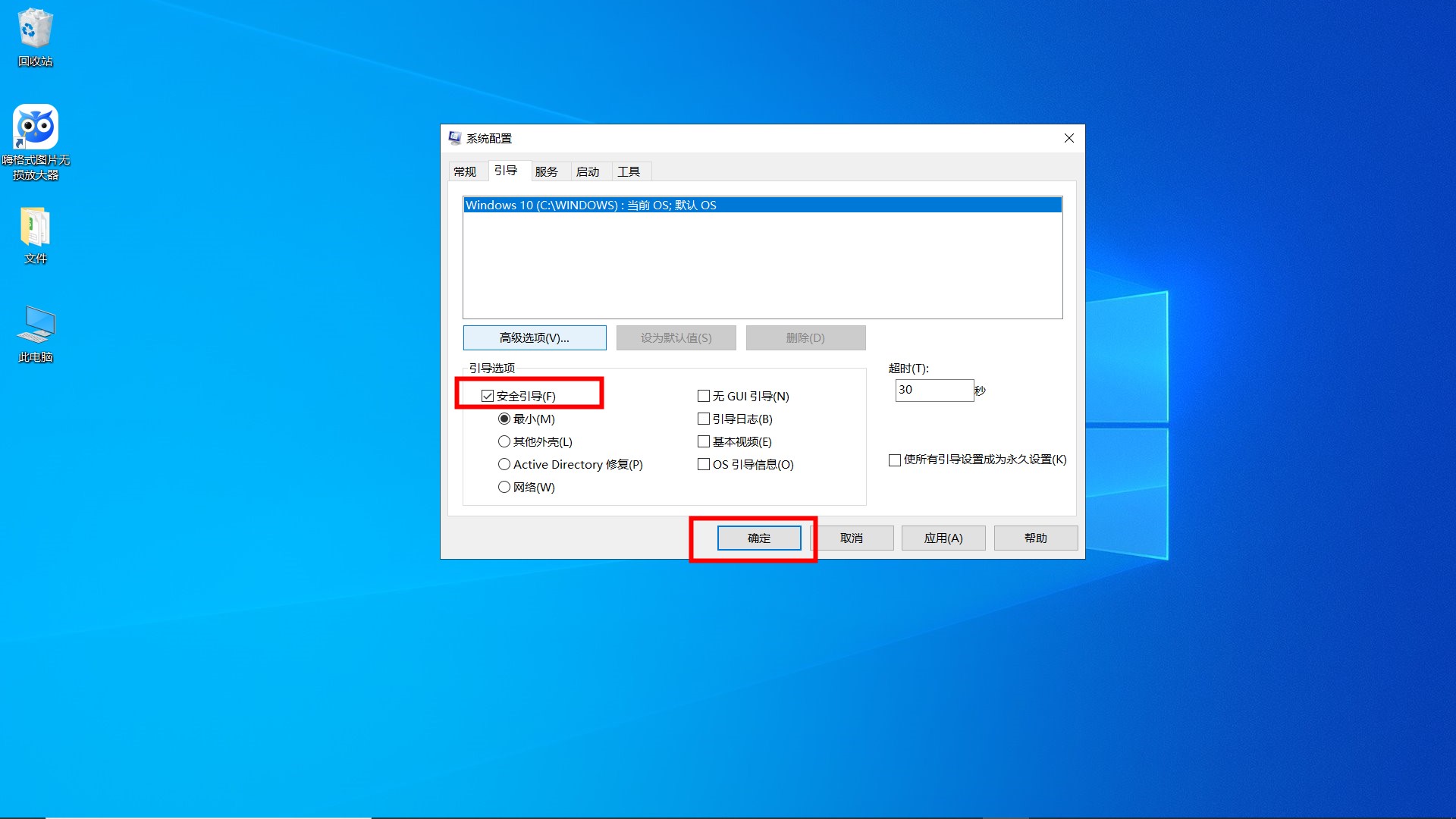 进入系统配置窗口,选择引导,在引导选项中勾选“安全引导”,点击确定。
