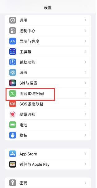 点击苹果手机设置中的“Face ID和密码”选项。