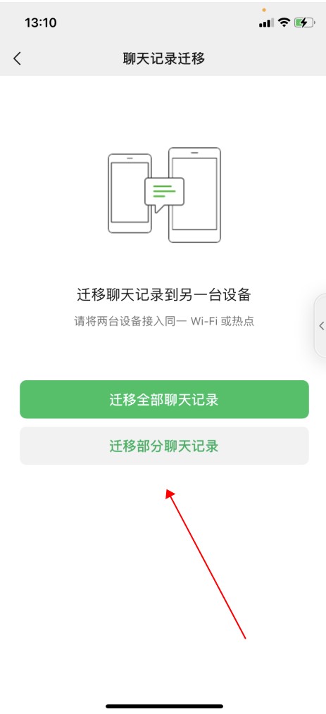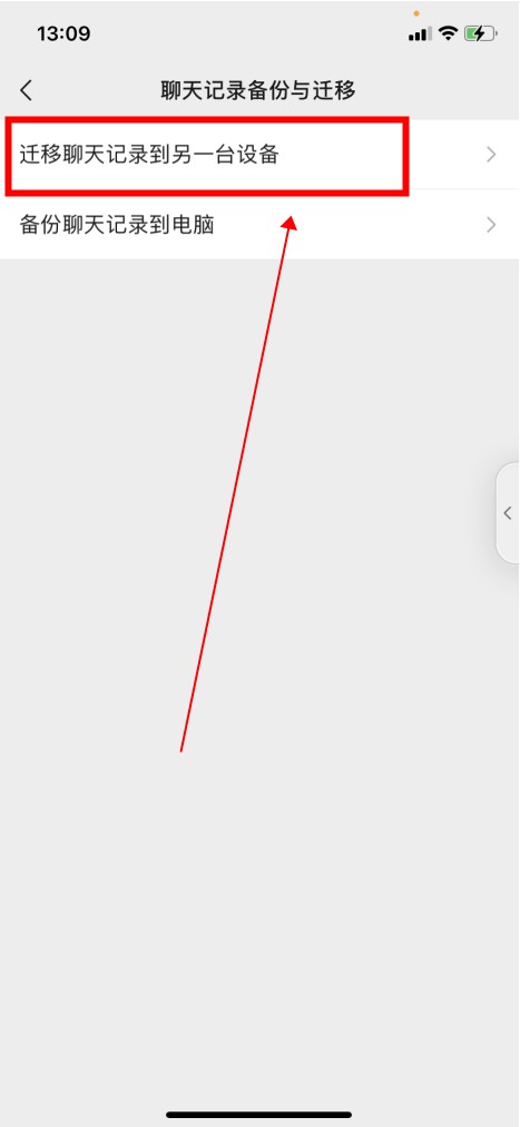 然后选择“将聊天记录迁移到另一台设备”并点击输入。