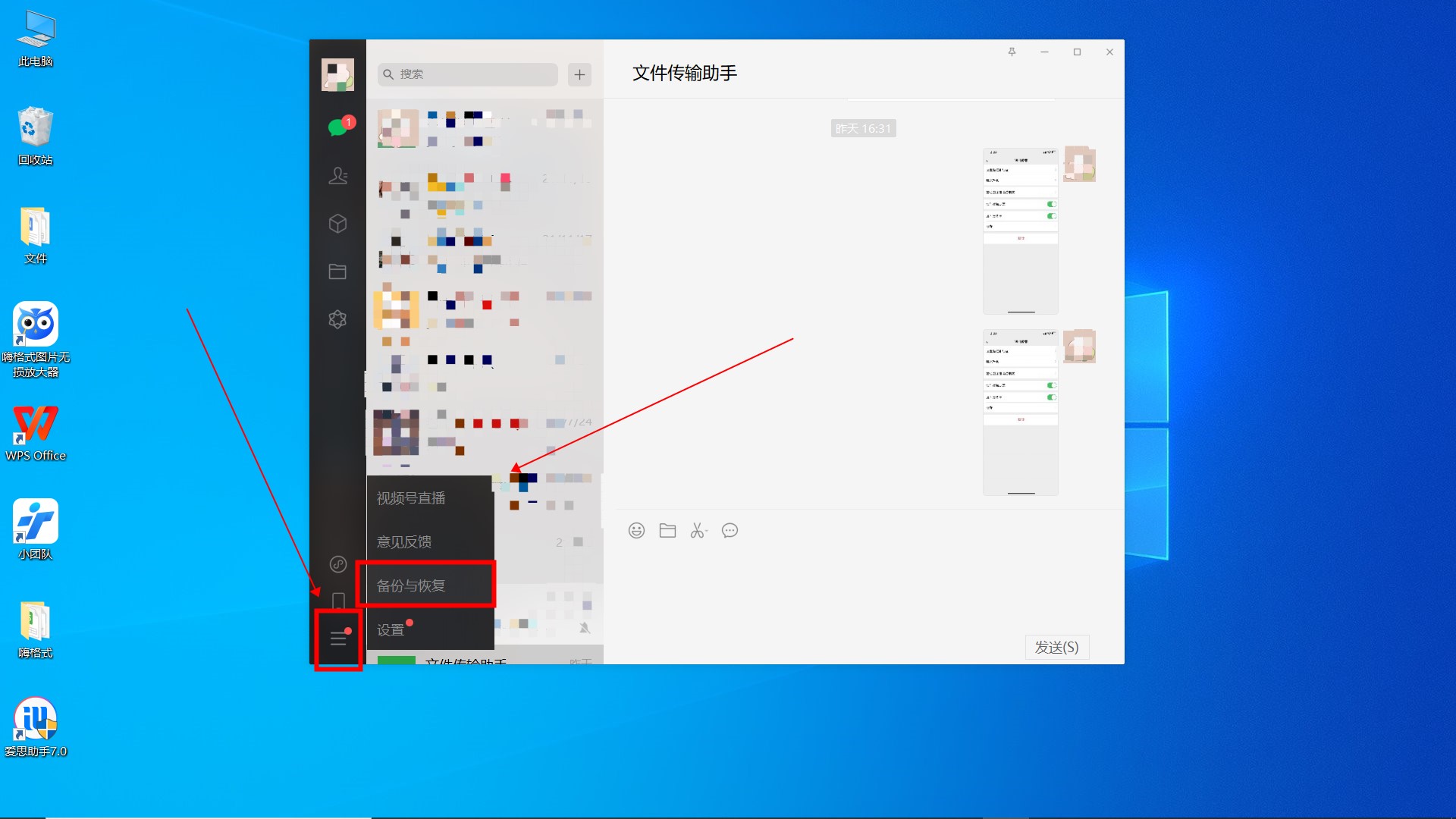 打开微信客户端,点击右下角的三个栏,点击“备份恢复”。