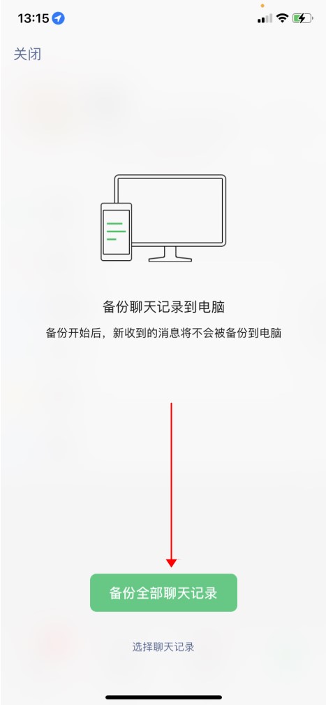 然后手机微信确认备份全部或者选择部分聊天记录。