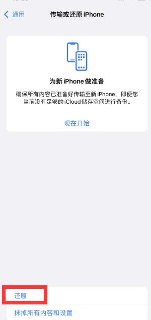 进入后,点击下面的“转移或恢复iPhone”选项。