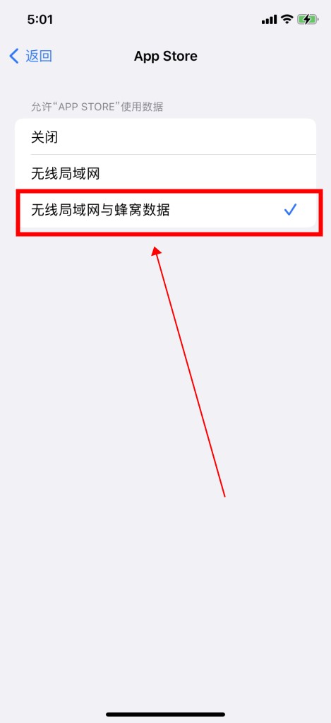 然后点击进入“使用无线局域网和蜂窝网的APP”。