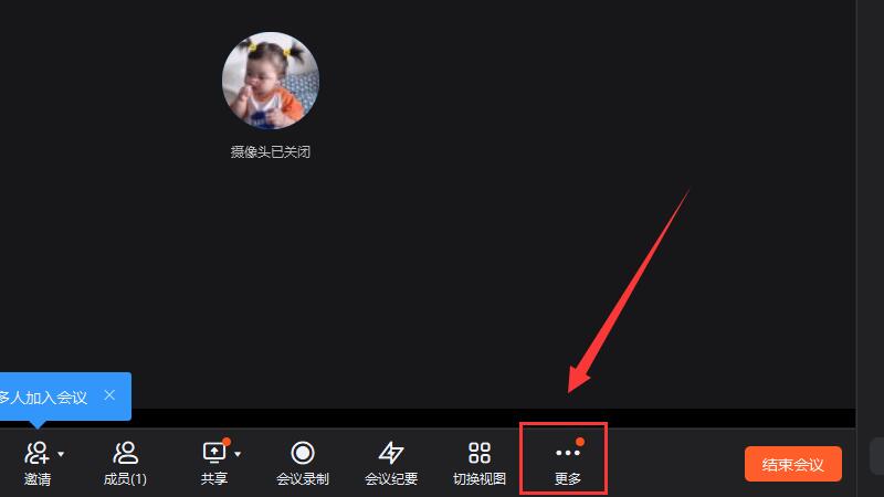 进入钉钉会议后点击下方“更多”选项。