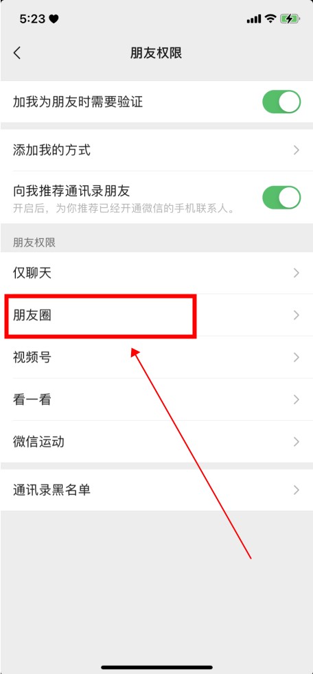 在这里,你可以选择设置朋友圈的查看范围,不能查看的好友,不看的好友。