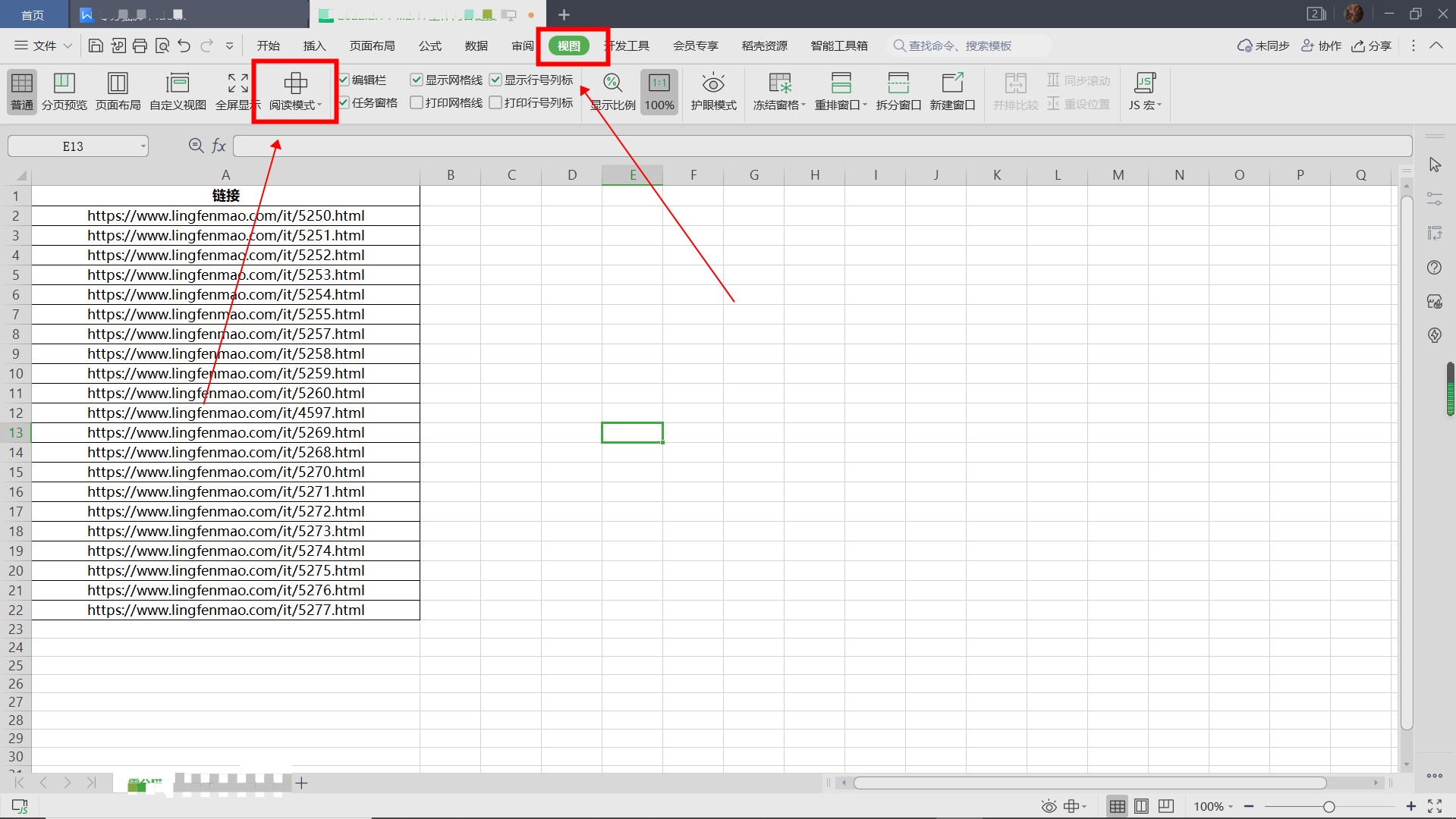 以打开电脑的WPS阅读模式为例,在WPS中打开一个Excel文件。