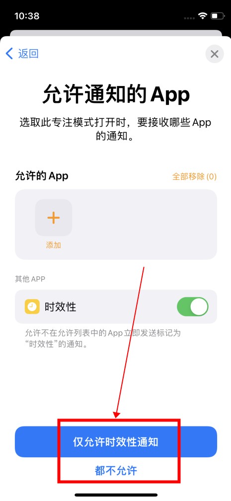 您也可以设置允许通知的应用程序,然后点按“仅允许时间敏感的通知”或“不允许”。