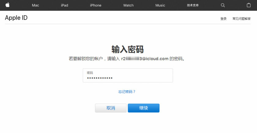 输入Apple ID密码以解锁您的帐户,然后点按“继续”。