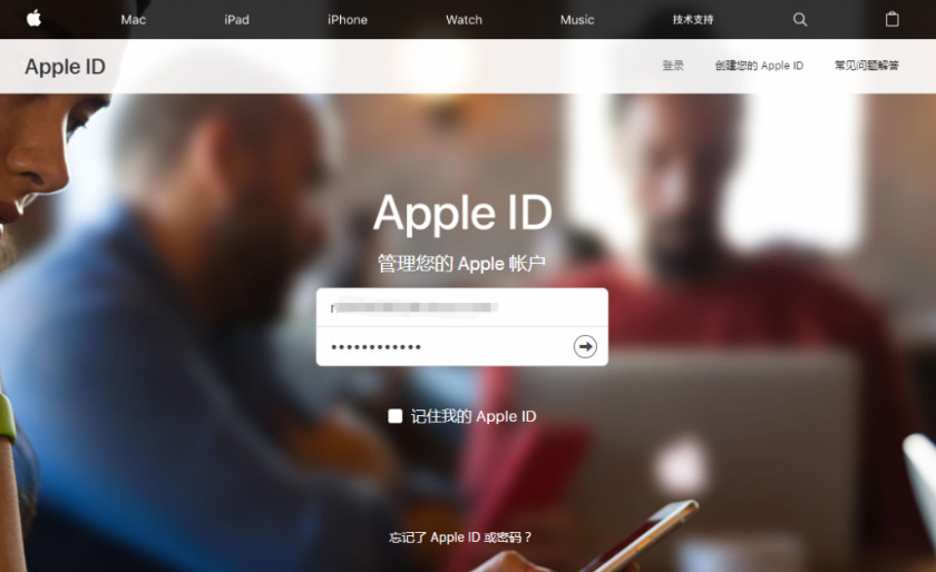 首先用电脑进入Apple ID管理中心,输入锁定的Apple ID和密码,点击登录。
