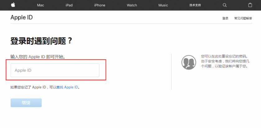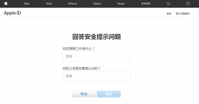 接下来,按照提示的安全问题,做出正确的回答,并再次单击“继续”。