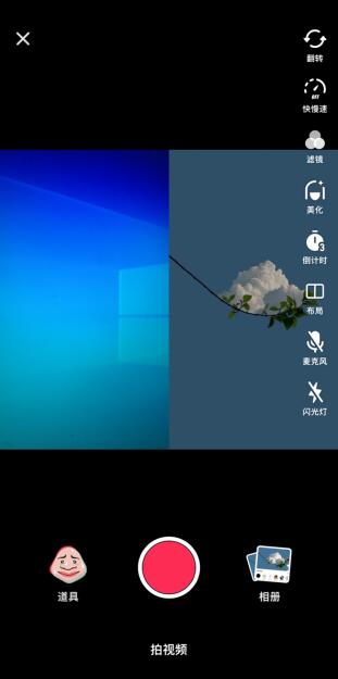 在合拍页面,点击红色按钮,拍摄所需内容。