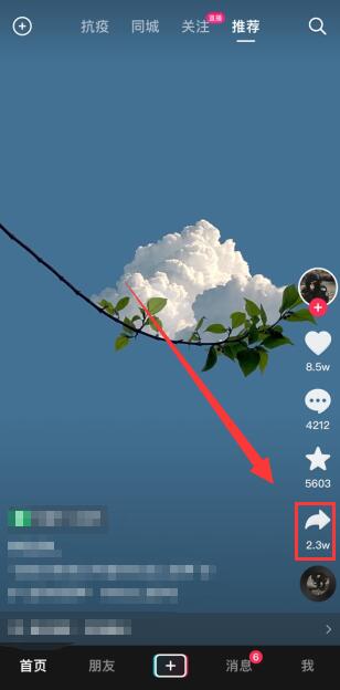 打开需要调音的抖音视频,点击右下角的分享按钮。