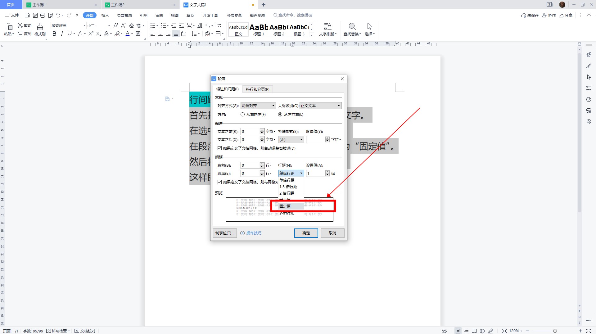 在段落窗口中,选择“行距”作为“固定值”中的间距。