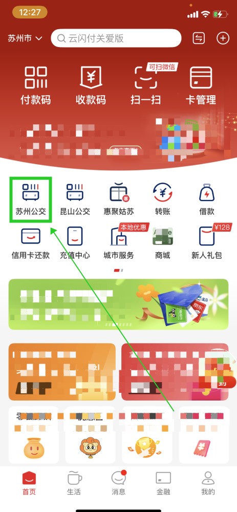 以苏州为例,在中国银联快速通首页点击“苏州公交”。
