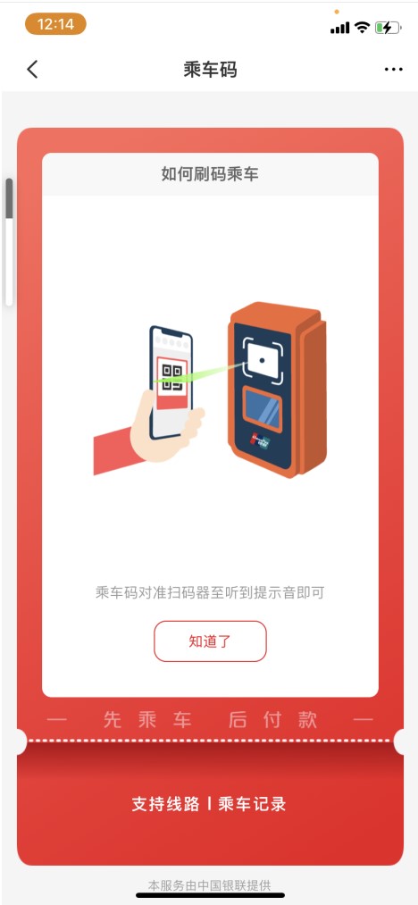 然后用乘车码对准乘车码扫描仪,听到提示音。