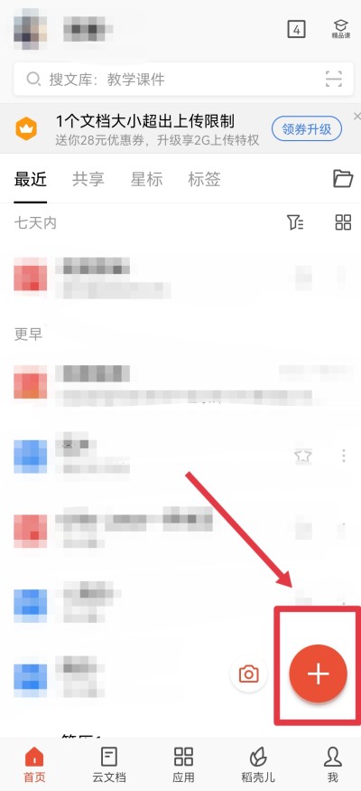 -   在WPS Office中点击加号 在WPS Office的手机页面中,点击右下角的“+”。
