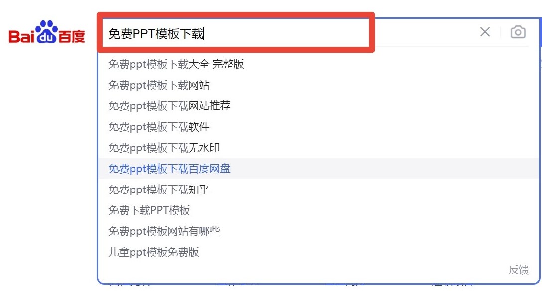 -   在百度搜索PPT模板 在百度搜索栏中,搜索“免费PPT模板下载”然后按回车键。