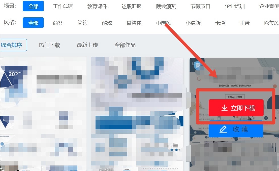 -   选择模板点击进入 在弹出的窗口中,选择所需模板点击进入“立即下载”。