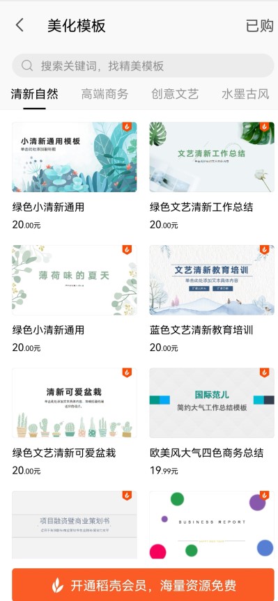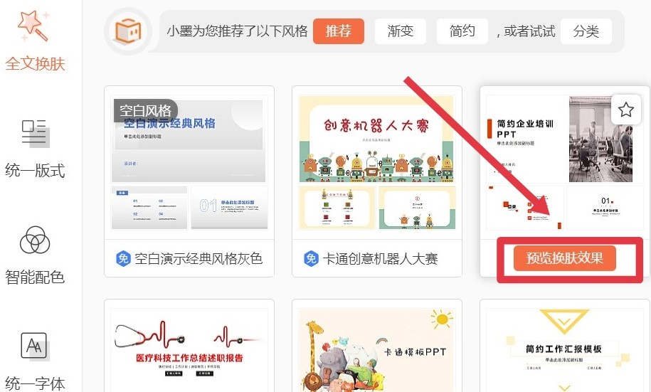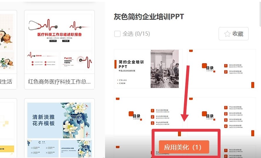 -   选择所需模板 在弹出的美化模板页面,选择所需模板即可。