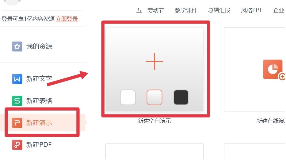 -   点击新建演示 在弹出的页面中,点击上方的“新建演示”。