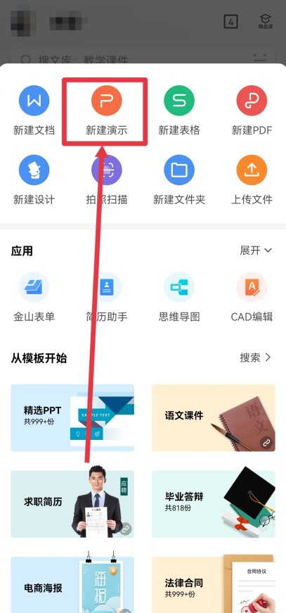 在WPS Office首页的“新建演示文稿”中点击“新建空白PPT”。
