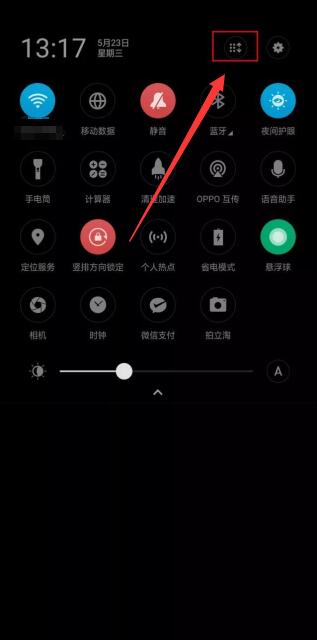 从电话屏幕顶部下拉菜单栏,并单击六个小图标。