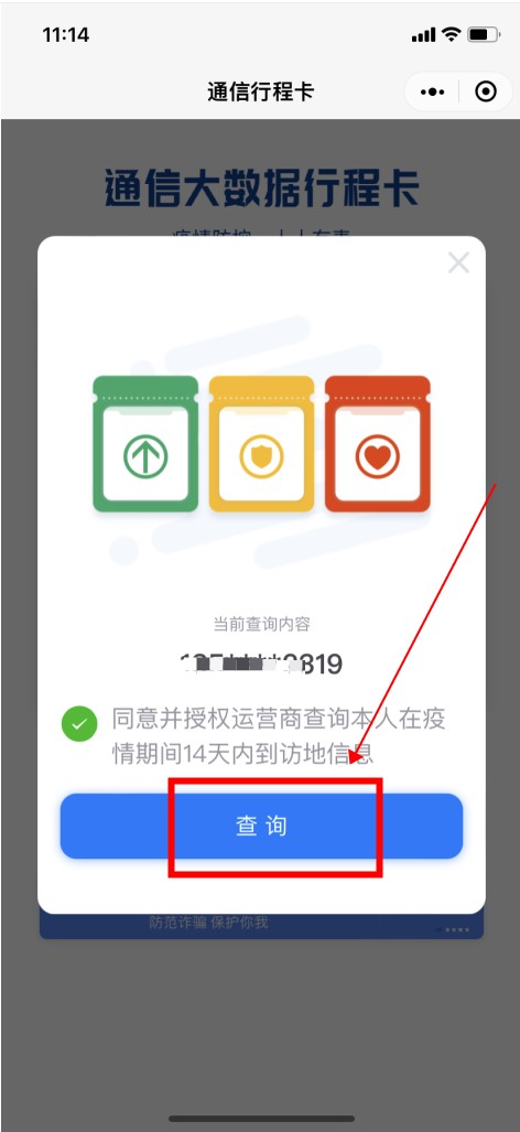 进入通讯行程卡界面,自动识别要查询的内容。选中同意,然后单击查询。