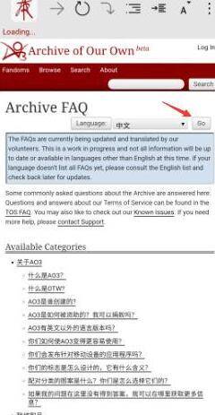 进入存档FAQ页面,点击语言选项选择“中文”,点击“go”切换到中文。