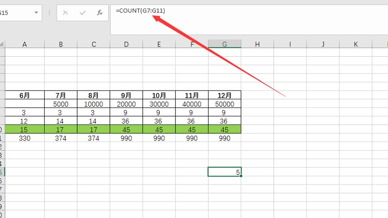 5.功能五:计算数值个数。COUNT函数可以直接对数值或列进行操作,以计算一行或一列中数值的个数。