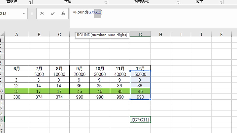 8.函数8:四舍五入Round函数可以对每个数值单元格进行四舍五入,对C2单元格的个数进行四舍五入,保留一位小数:ROUND(C12,1)