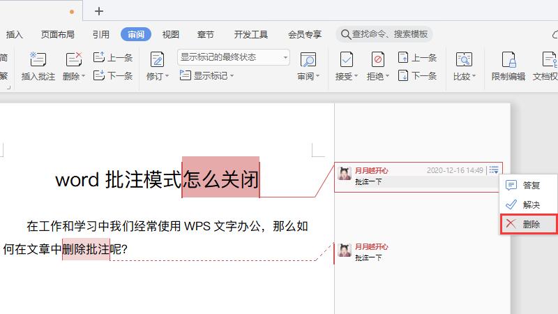 读者你好,本文主要回答你关于word批注模式怎么关闭的问题,具体内容如下: