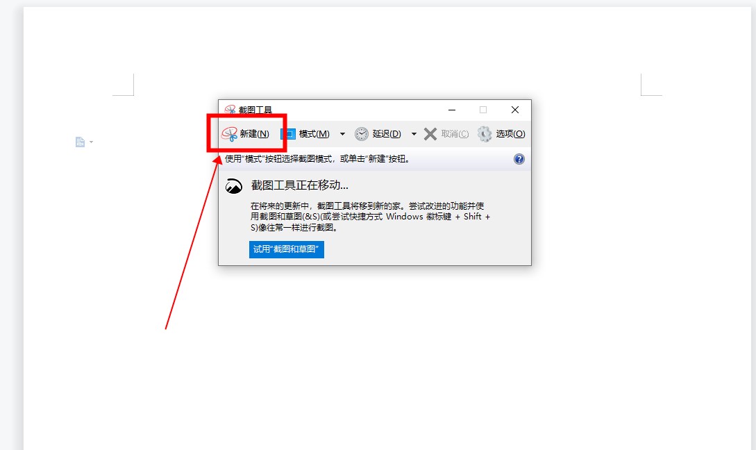 在屏幕截图工具窗口中,单击“新建”按钮。