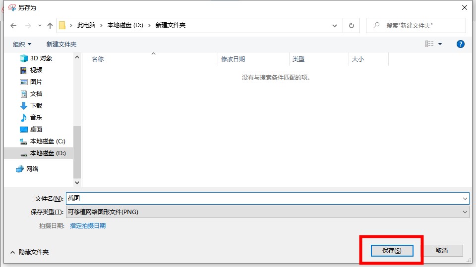 选择要保存截图的位置,然后单击保存。