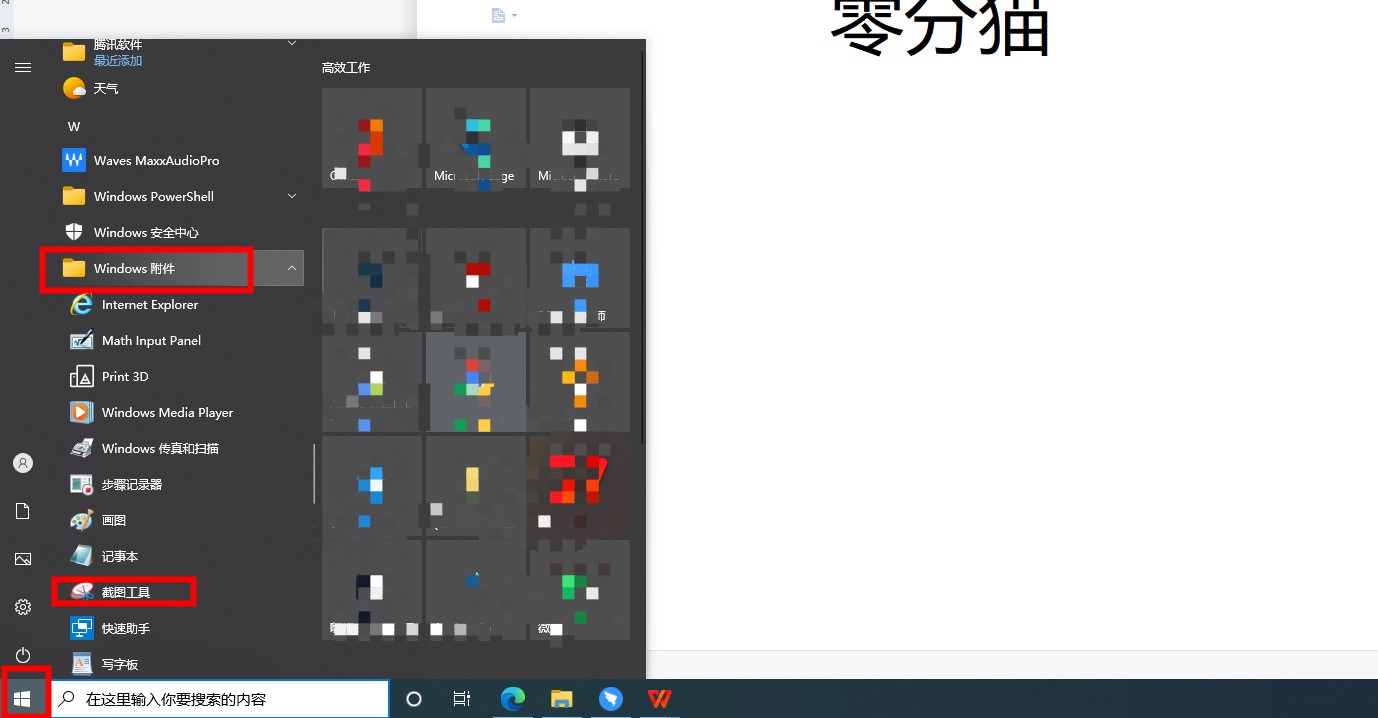 首先,在你的电脑桌面上点击“开始”,在“Windows附件”中找到并点击“截图工具”。