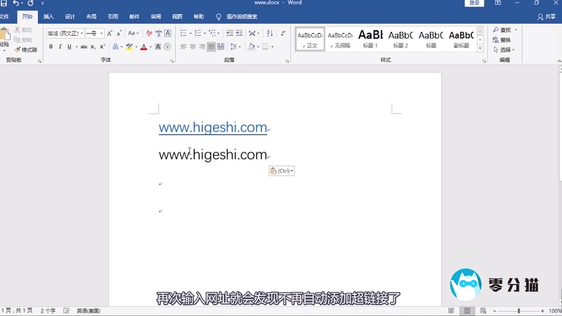打开Word文档。如果超链接是自动添加的,文本将变成蓝色,底部有一条水平线。