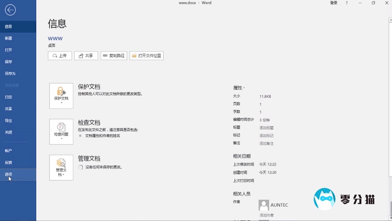 1.我们先点击文件,在弹出的界面中点击选项,在选项菜单中选择校对。