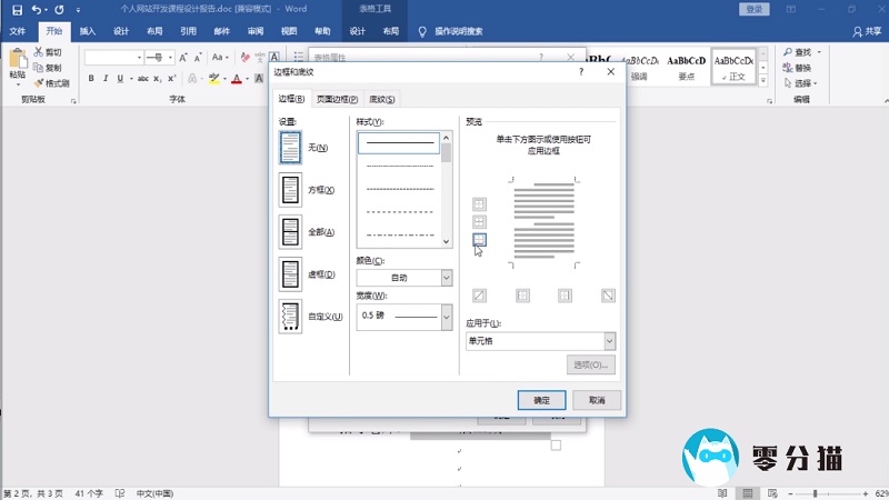 3.然后我们选择第二列,再次右键单击表格属性,单击边框和底纹,然后单击这两项,单击确定添加横线。