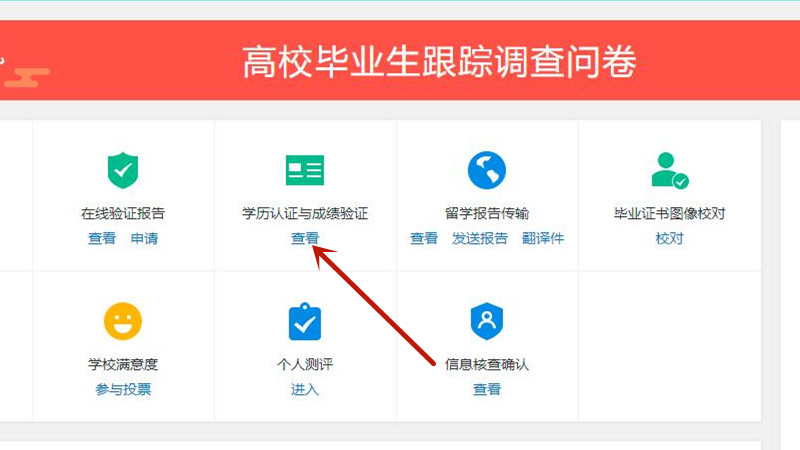 进入后,找到“学历认证和成绩验证”,点击“查看”按钮。